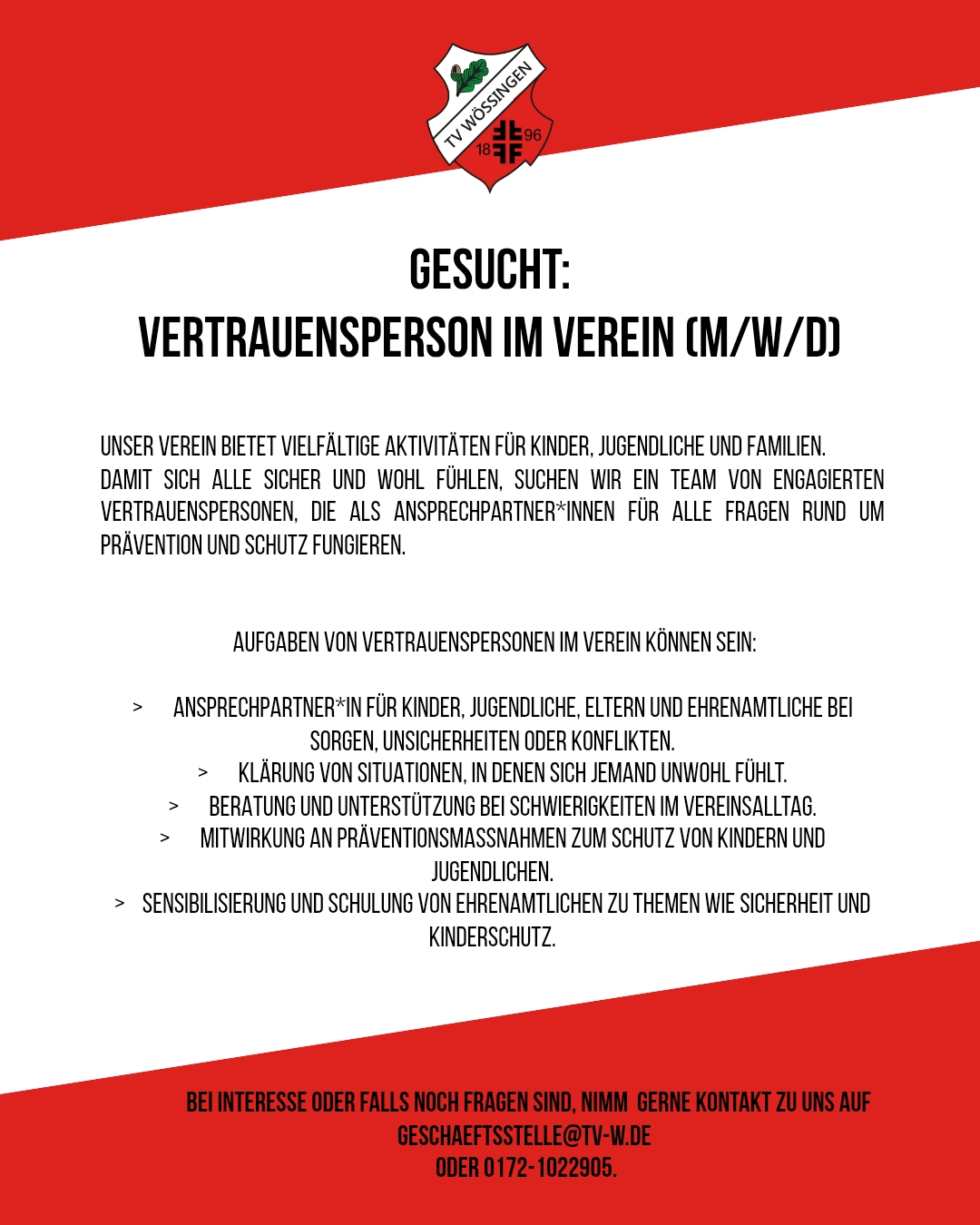 Stellenausschreibung Vertrauensperson im Verein