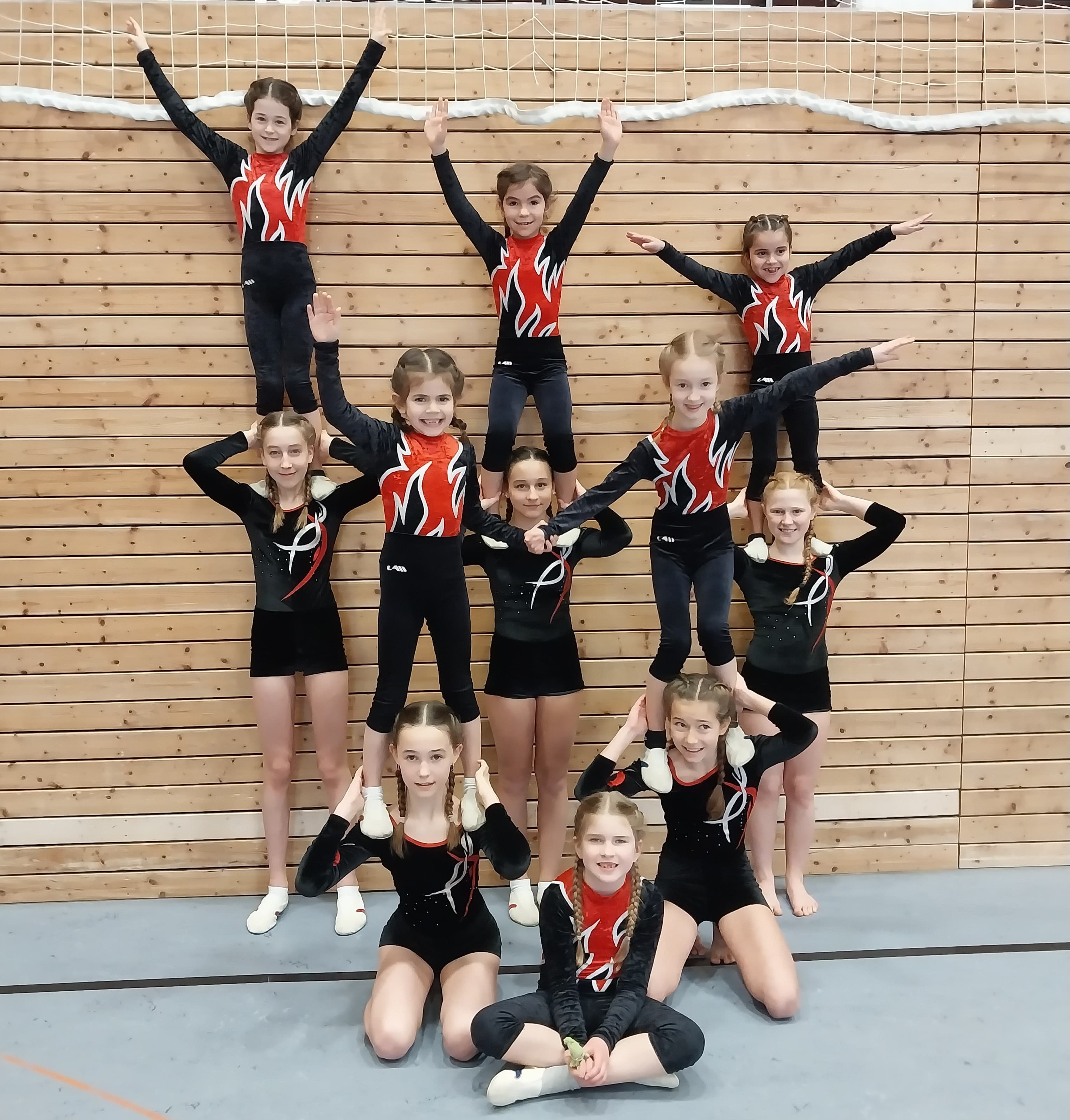 Am Nachmittag turnten die Mädchen der Jahrgänge 2013 und jünger. Die beiden Mannschaften mit Malou Marbach, Maelle Marbach, Mia Payer, Viviana Dell'Atti, Hannah Dittus, Nora Beric, Amilia Hadzipasic, Celina Blimel, Katharina Reinhardt und Lydia Mitschke erreichten die Plätze 7 und 10 im starken Teilnehmerfeld ihres Wettkampfes.