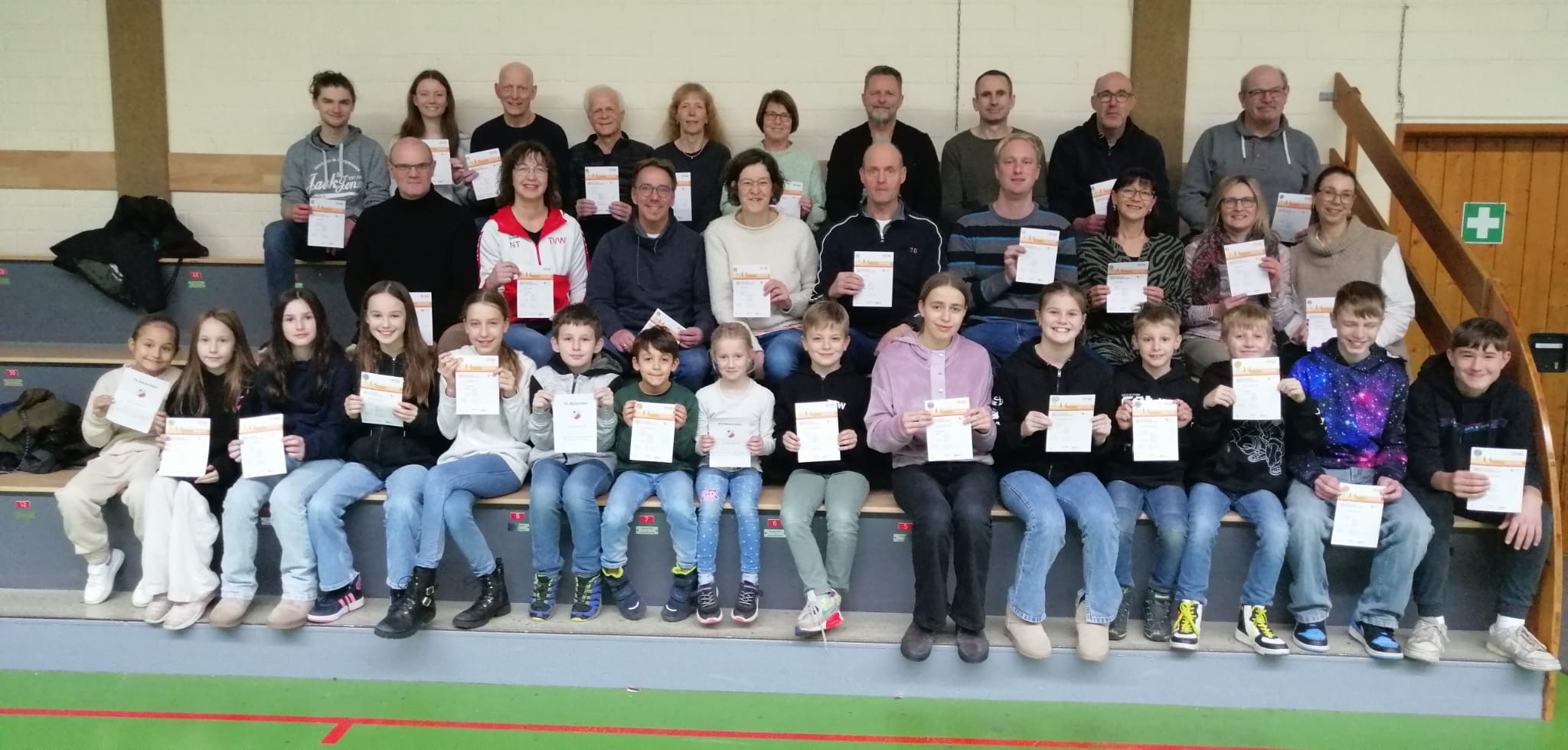 Kinder, welche aufgrund der fehlenden Schwimmfertigkeit die angeforderten Bedingungen für das Sportabzeichen nicht erbringen konnten, wurden mit dem TV-Abzeichen ausgezeichnet.