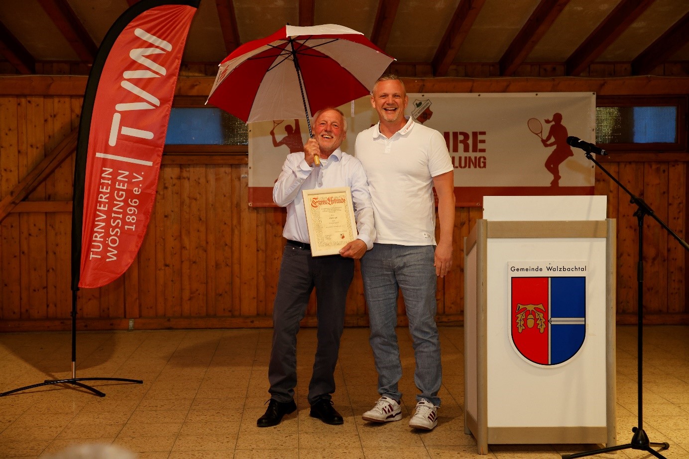 Die Landesturnfestfahne weht im Hintergrund
