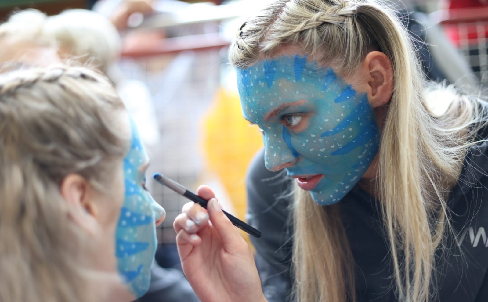 Weiter ging es im Eiltempo zurück in die Sporthalle. Unsere Turnübung belohnten die Kampfrichter mit 9,25 von 10 möglichen Punkten – Jubel brach in der Wössinger Ecke auf der Tribüne aus. Als letzte Disziplin stand das Tanzen auf dem Programm. Nachdem alle Gesichter aufwändig geschminkt waren, präsentierten wir unseren neu einstudierten Tanz und entführten das Publikum als Avatare und Soldaten nach Pandora. Mit 9,45 Punkten auf dem Wertungsbogen waren wir mehr als zufrieden. Ein großes Dankeschön geht an Maike, die unseren Helferdienst in der Halle absolvierte, während wir von einer Disziplin zur nächsten unterwegs waren. Am Ende erreichten wir mit einer der besten Bodenübungen und einem der besten Tänze des Landes zusammen mit einer ausbaufähigen Wurfleistung einen tollen achten Platz.
