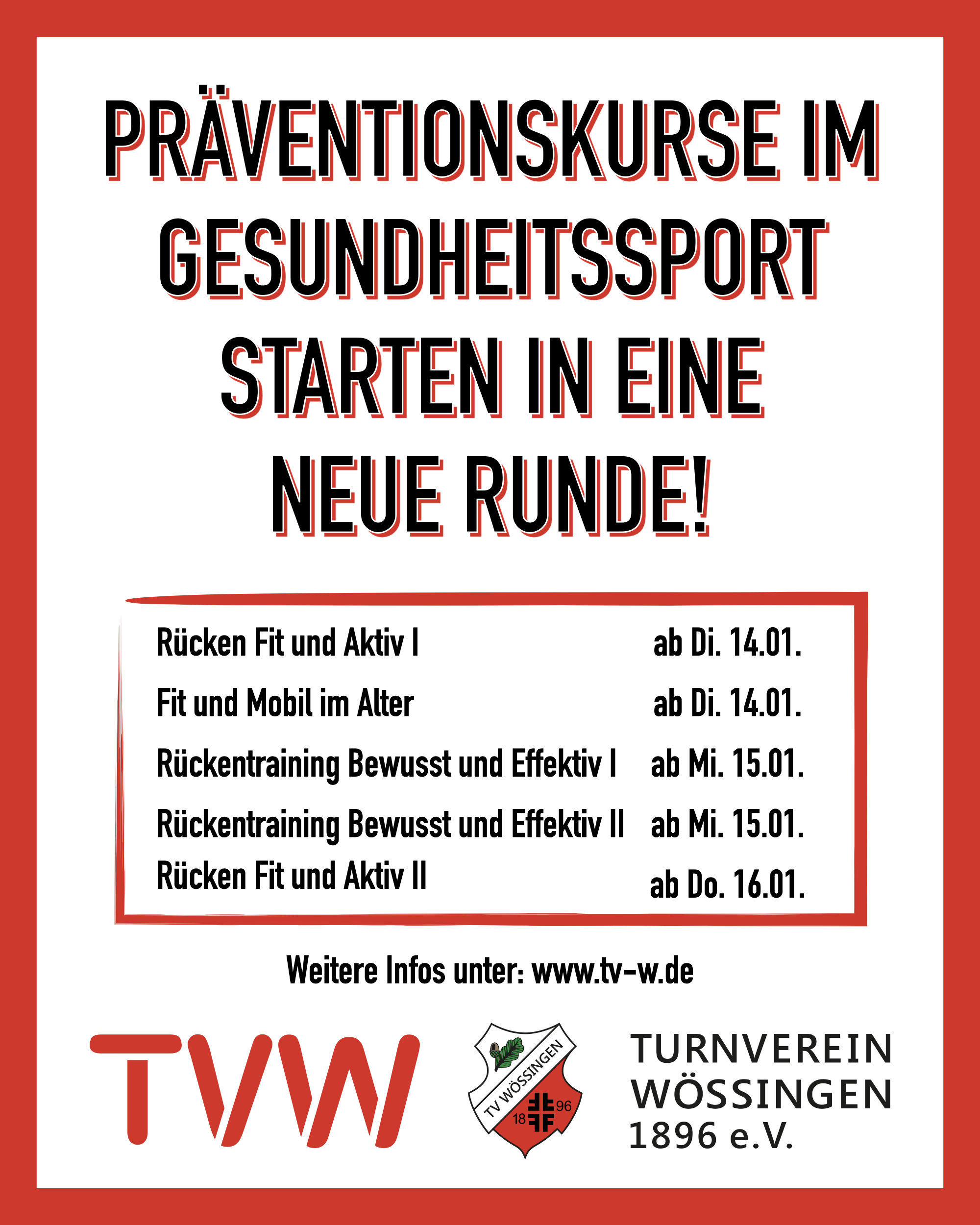 jeweils dienstags von 11.00 Uhr bis 12.00 Uhr im Gymnastikraum der Sporthalle des TV Wössingen